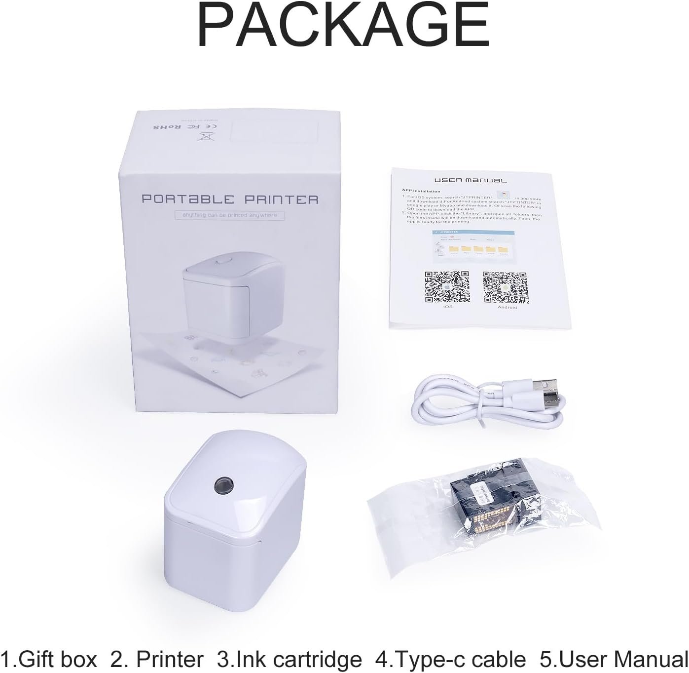 - Order Includes:1 * Mini Portable Printer; 1 * Black color ink cartridge; 1 * Type C charger cable; 1 * Manual book